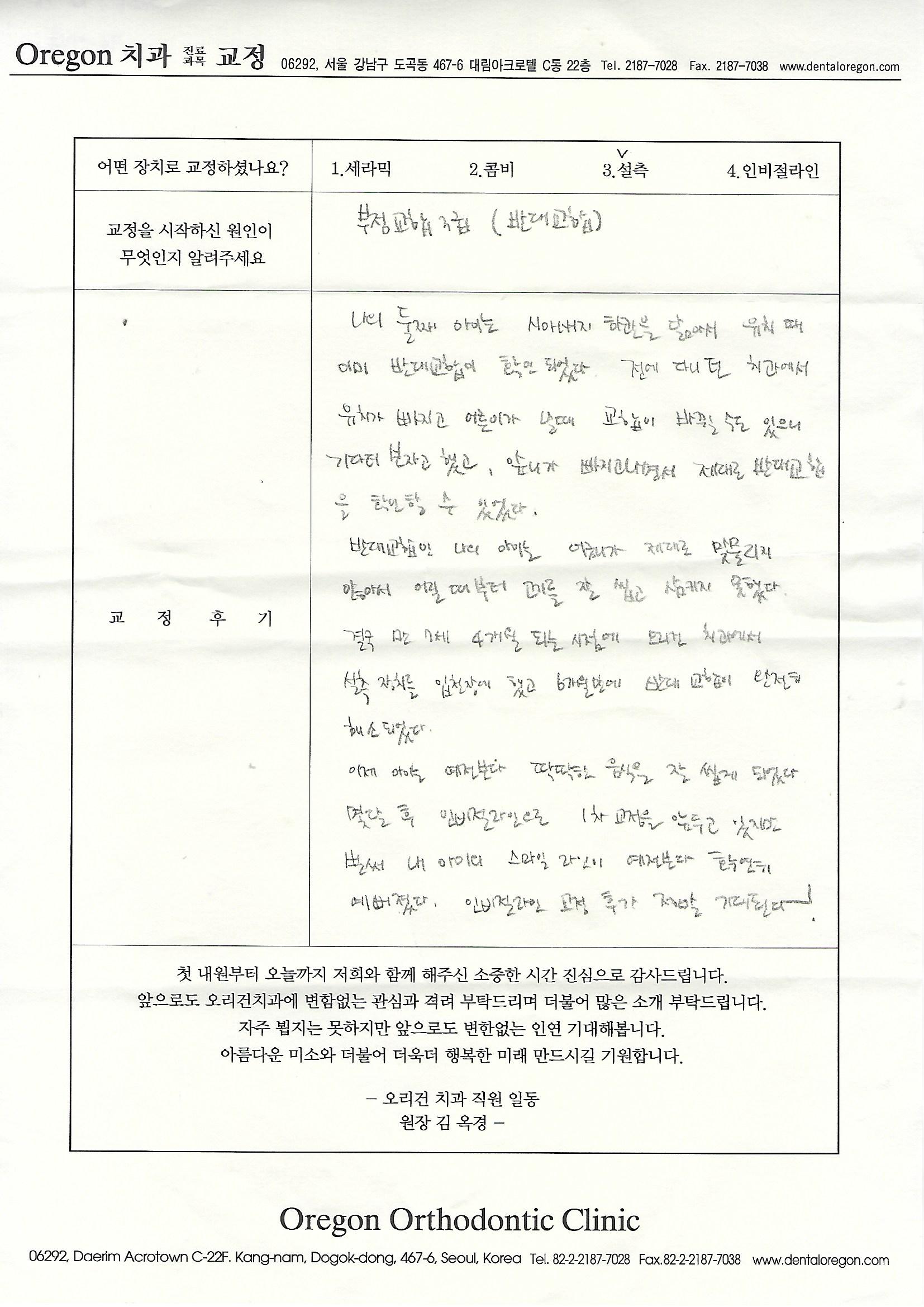 치아교정소감문